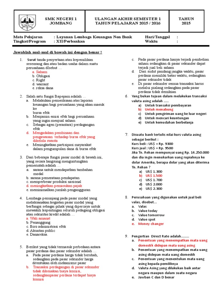 Bank dan Lembaga Keuangan Bukan Bank - Latihan Soal .K13 Revisi …