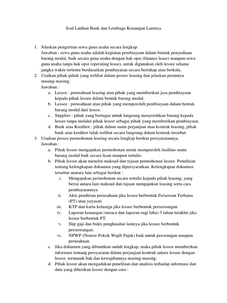 Contoh Soal Tentang Lembaga Keuangan Bukan Bank & Jawaban …