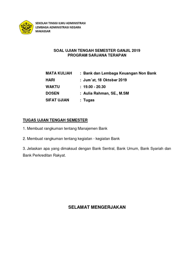 Soal dan jawaban uas bank dan lembaga keuangan - [DOCX Document]