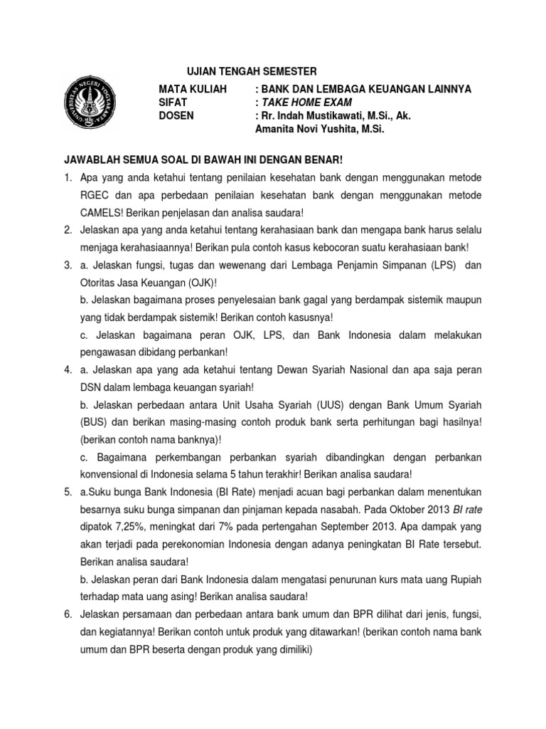 Soal dan jawaban uas bank dan lembaga keuangan