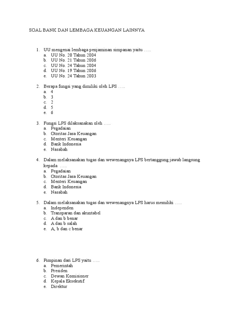 Contoh Soal Bank Dan Lembaga Keuangan Lainnya - Dapatkan Contoh