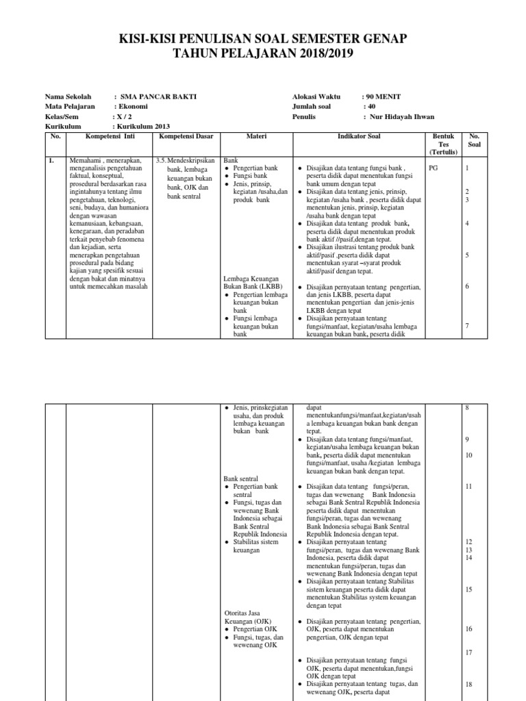 Kisi - Kisi Soal Uas Eko x