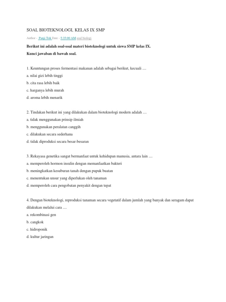 Soal Bioteknologi, Kelas IX SMP - Info Pendidikan dan Biologi