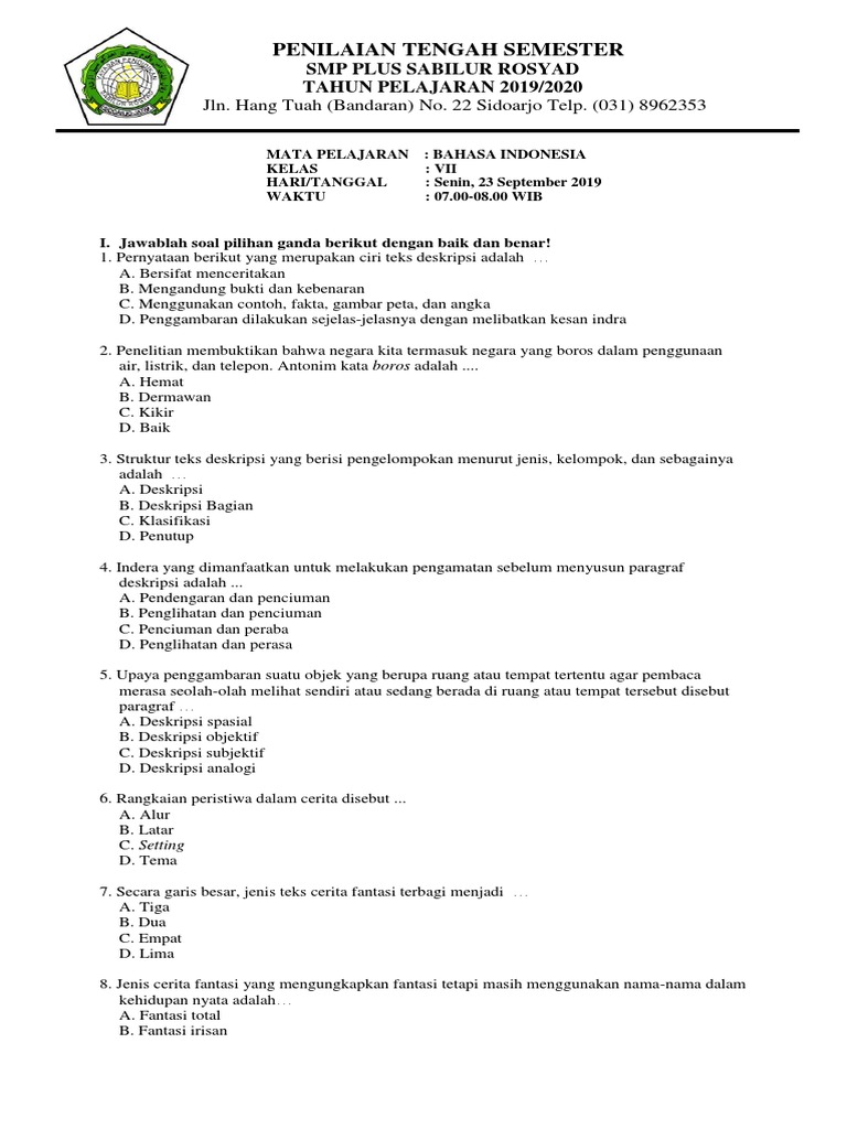 Lengkap - 50+ Contoh Soal UAS Bahasa Indonesia Kelas 7 SMP/MTs …