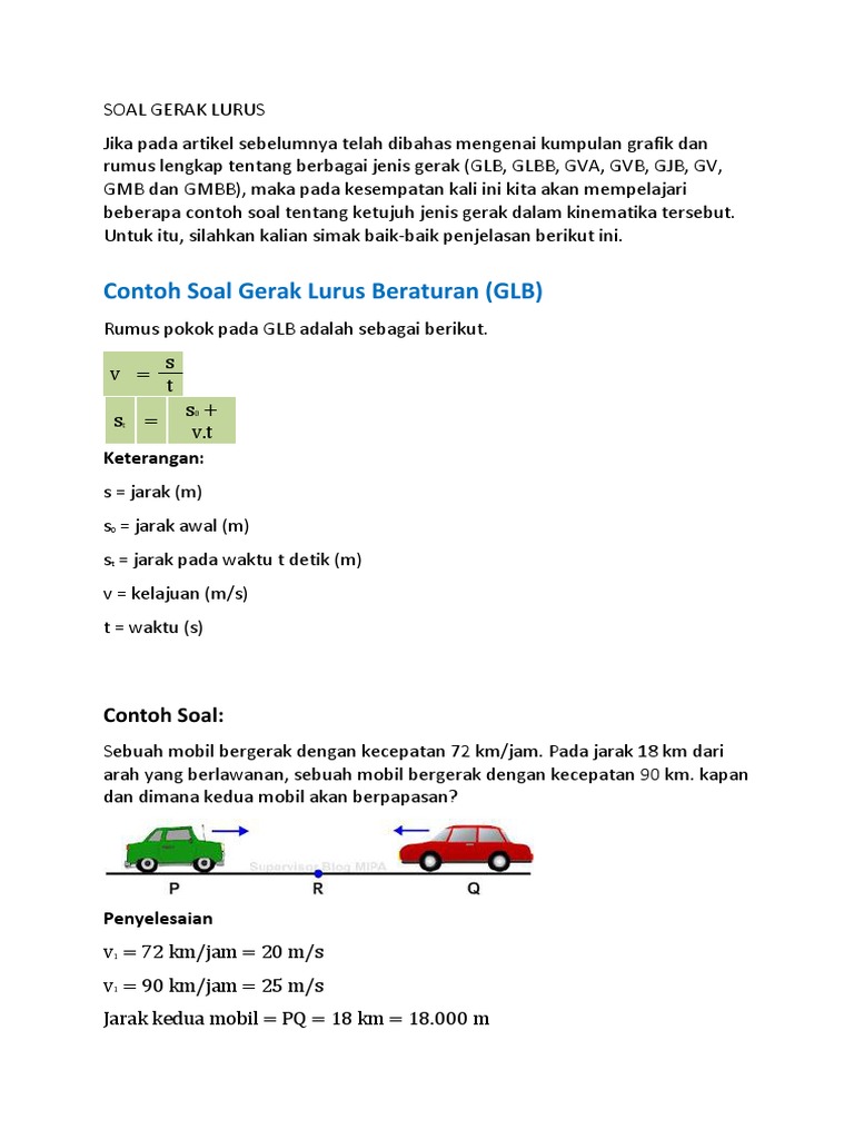 Soal Soal Latihan Gerak Lurus Beraturan (GLB) - Harianja Uniks