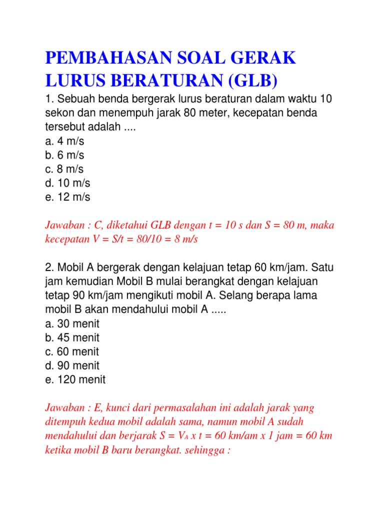 Contoh Soal Glb Dan Glbb Kelas 8 Beserta Jawabannya | Ilmu …