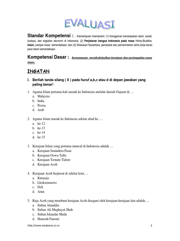 Contoh Soal Dan Jawaban Tentang Kerajaan Islam Di Indonesia - Barisan Contoh