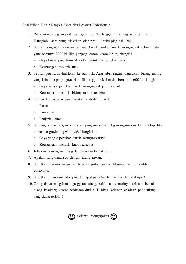 Latihan Soal Ipa Kelas 8 Sem 1 Rangka Otot Dan Pesawat Sederhana