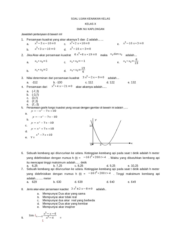 Contoh Soal Uts Matematika Kelas 10 - Contoh Soal Terbaru