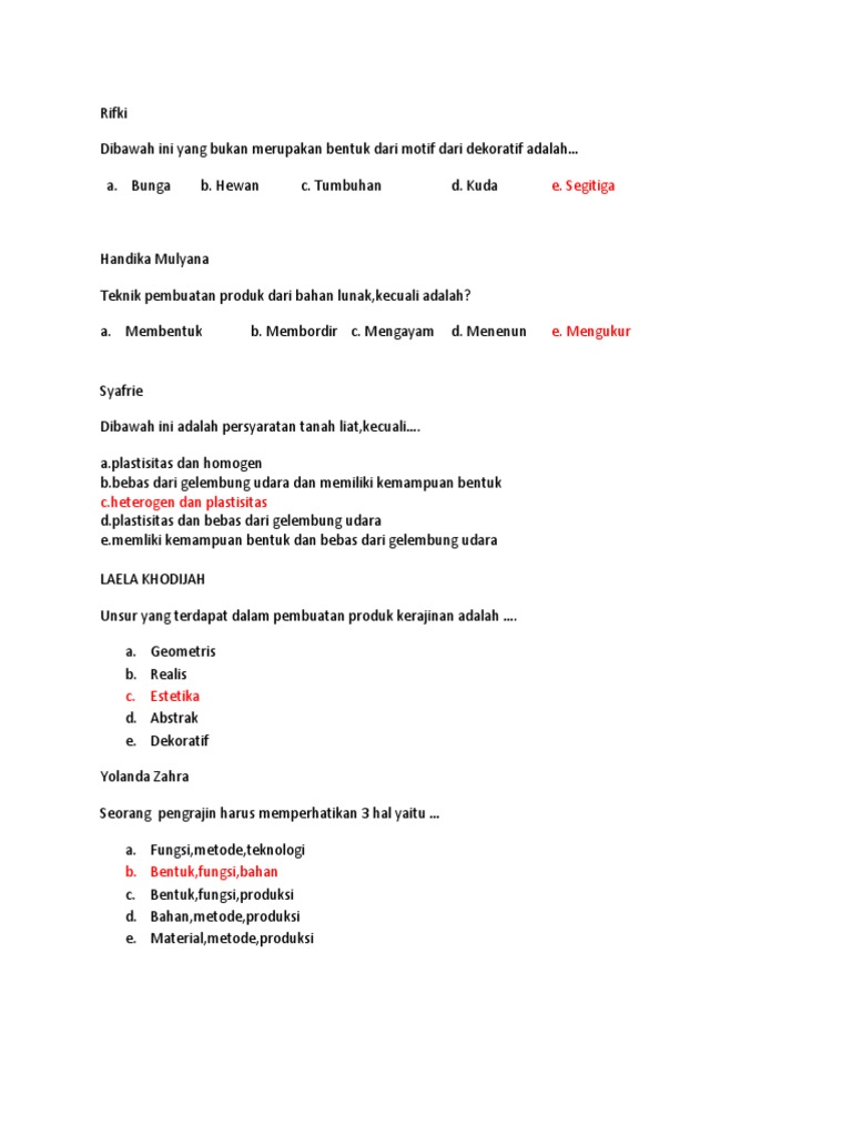 PDF) Kunci Jawaban Soal Semester Prakarya Kewirausahaan Kelas X | HERY WIBOWO - Academia.edu