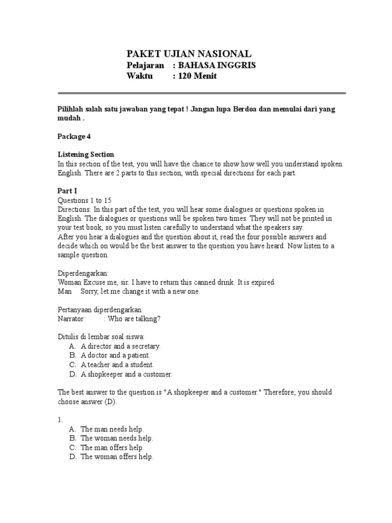 Contoh soal un bahasa inggris smp paket 2 - [PDF Document]