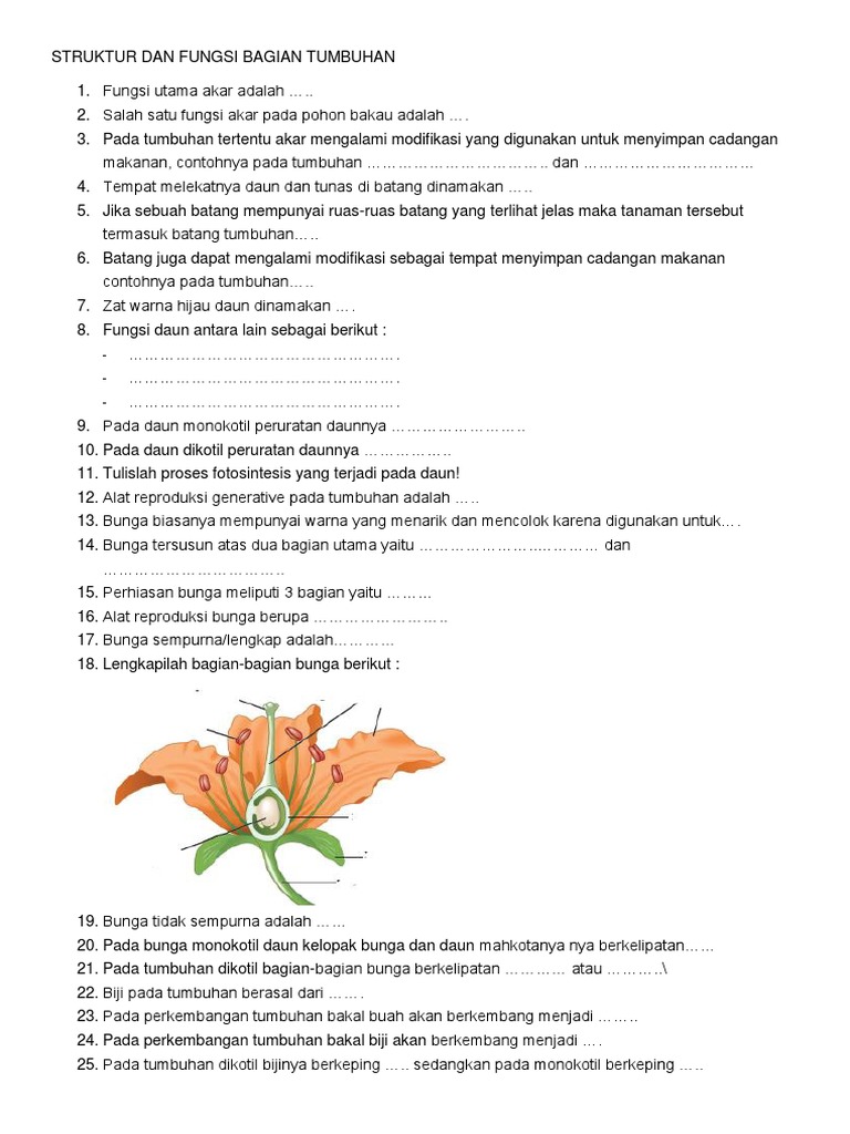 Latihan Soal Struktur Dan Fungsi Tumbuhan Kelas 8