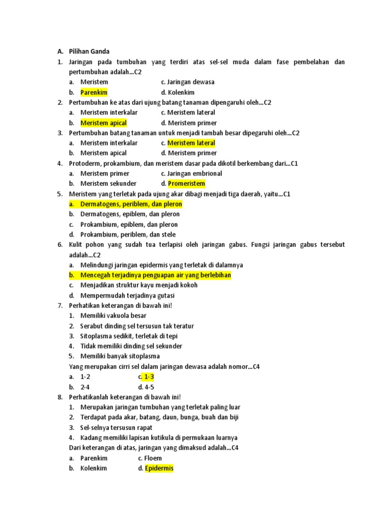 Contoh Soal Tts Biologi Tentang Jaringan Tumbuhan - Guru Paud