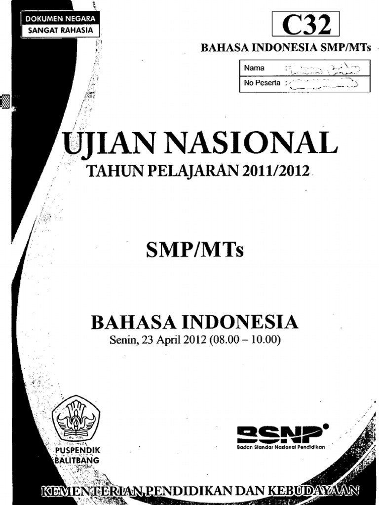 Naskah Soal UN Bahasa Indonesia SMP (Paket C32)