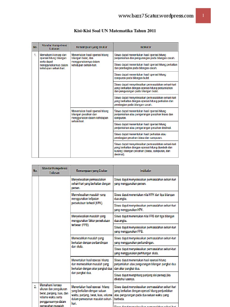 Contoh Soal: Soal Uraian UN MATEMATIKA Kelas 6 SD / MI dan Kunci …