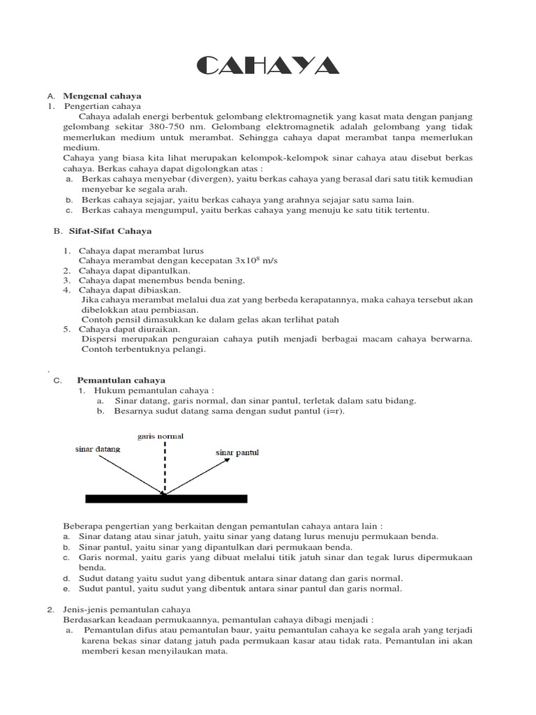 CAHAYAsebutkan sinar jatuh pada bidang pemantul dengan sudut …