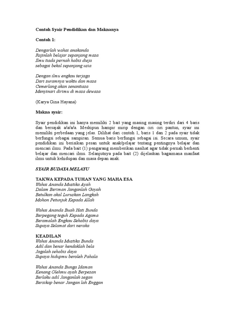 Contoh Syair Beserta Tema Dan Amanat Bca Contoh - Cute766