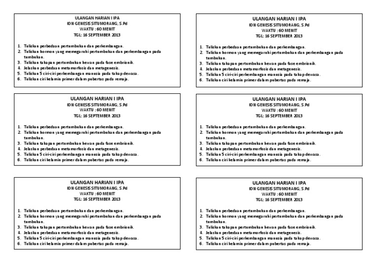 Soal ipa kelas viii bab 1 pertumbuhan dan perkembangan