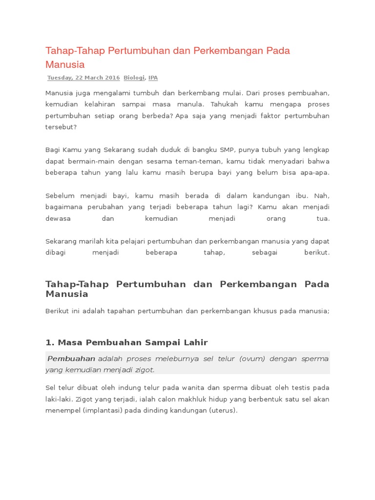 Proses pertumbuhan dan perkembangan pada manusia (Biologi …