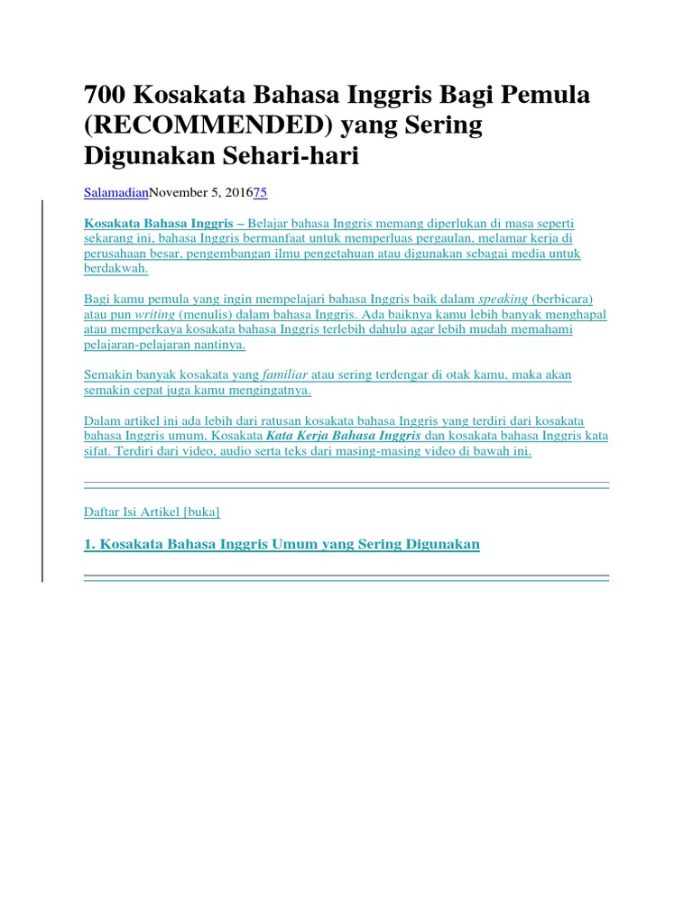 700 Kosakata Bahasa Inggris Bagi Pemula (RECOMMENDED) yang Sering …