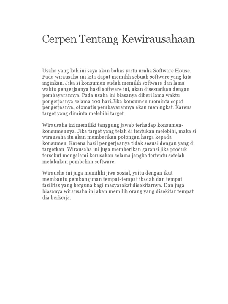 Cerpen Tentang Kewirausahaan