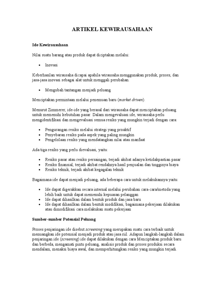 DOC) Artikel Kewirausahaan | Sintta Alawiyah - Academia.edu