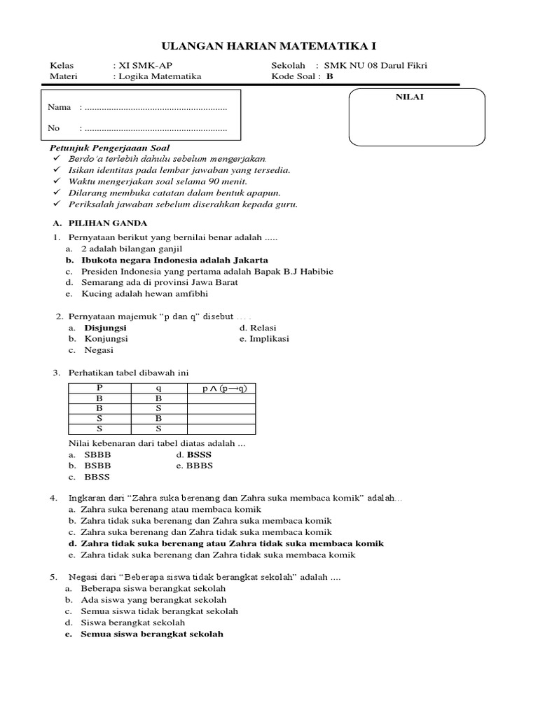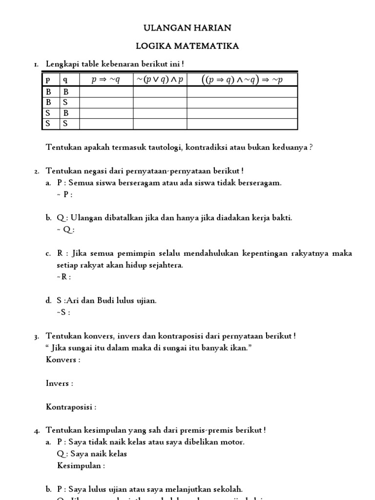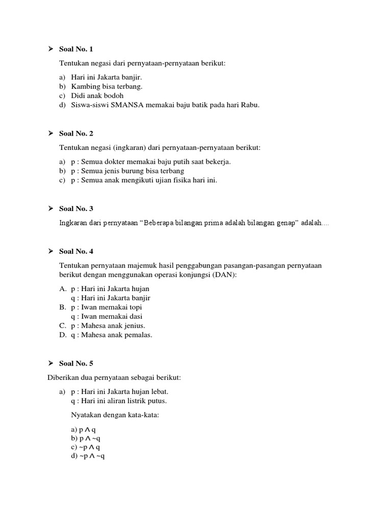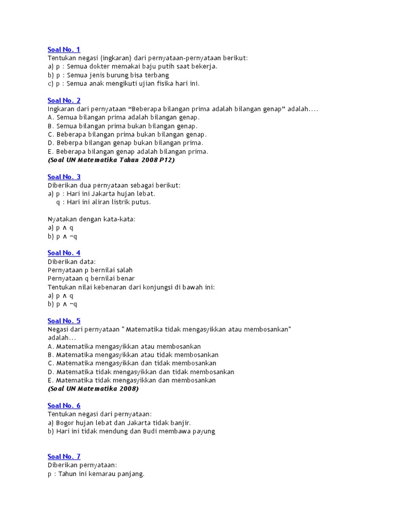DOC) Contoh Soal Latihan Logika Matematika dan Pembahasan Lengkap | anada caniago - Academia.edu