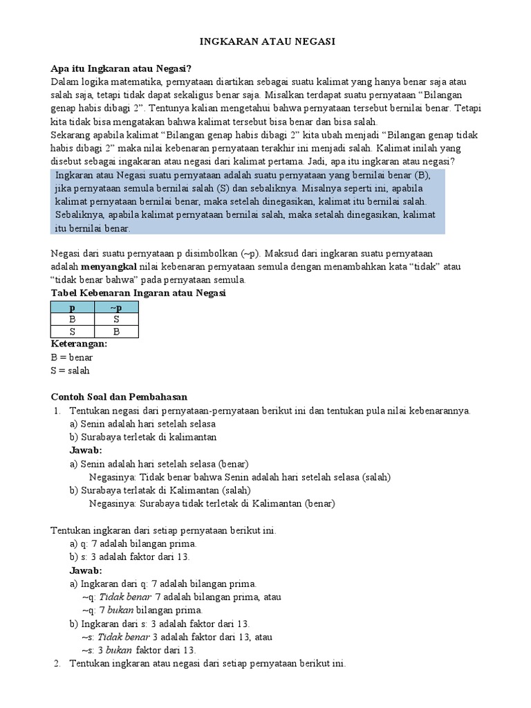 Ingkaran Atau Negasi Apa itu Ingkaran atau Negasi?