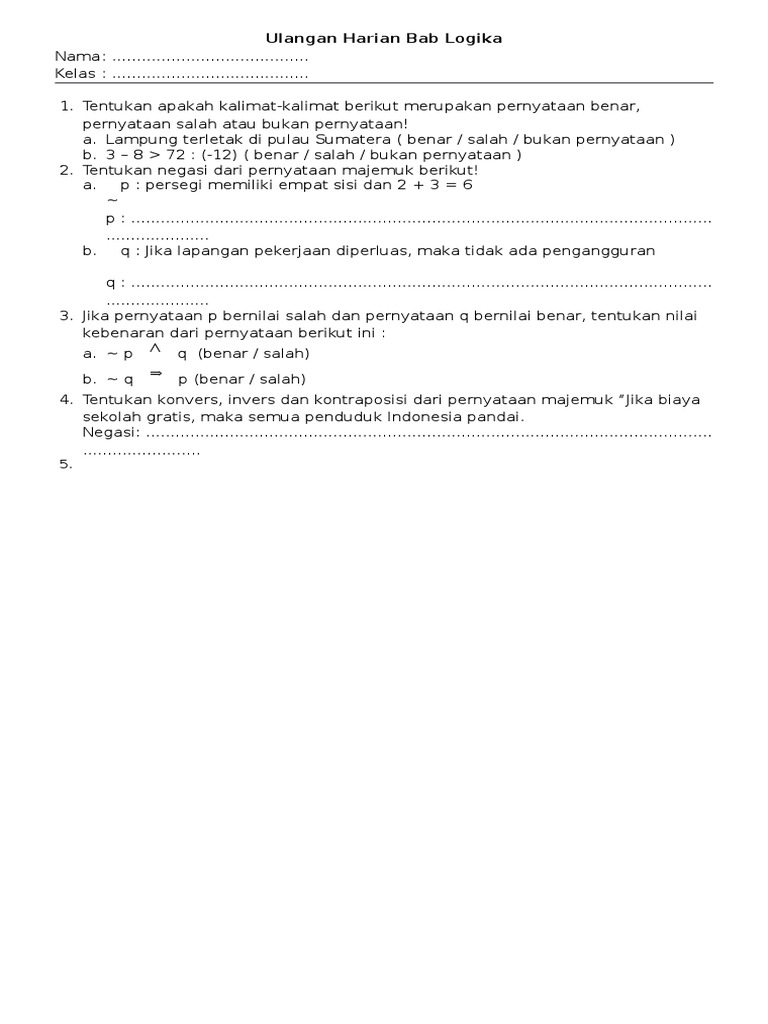 Soal Ulangan Logika Matematika