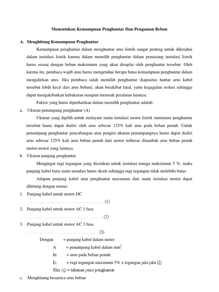 Dokumen Serupa dengan Menentukan Kemampuan Penghantar Dan Pengaman Beban