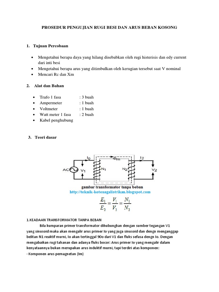 Transformator Bagian 2: Pengujian Tanpa Beban - Alif Pustaka