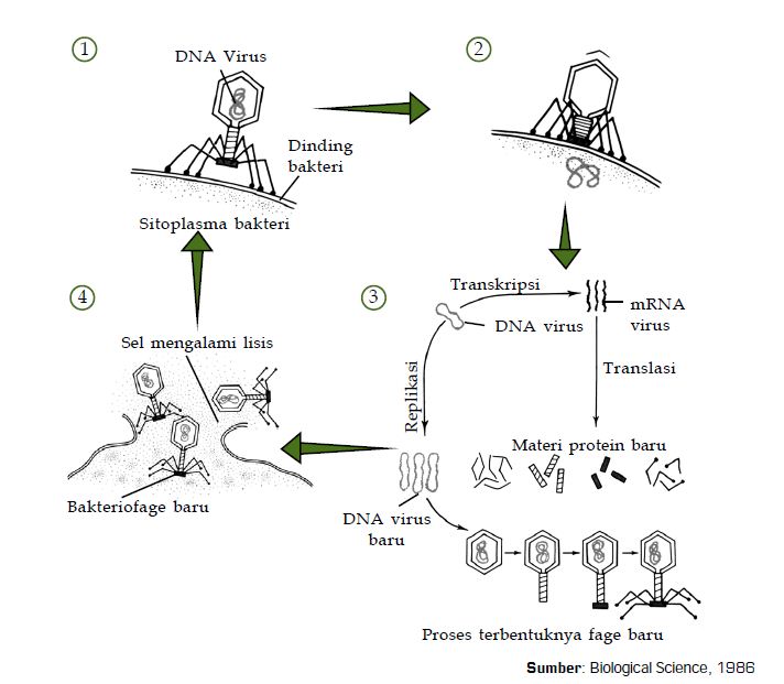 Proses Replikasi / perbanyakan virus bakteriofag - Referensi Biologi