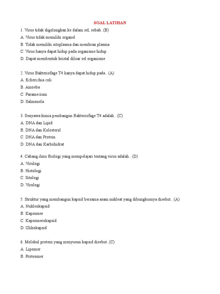 BIOLOGI GONZAGA: PRE TEST VIRUS